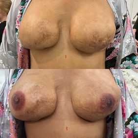 Areola scars are common with those who had breast surgery. I'm proud to say Areola scar camouflage is my favorite camouflage tattoo. I love how quickly I can provide a complete result, it is incredibly rewarding. It is also a special procedure because it is less invasive than a painful skin-grafting procedure, which for many years was the only available method of restoring balanced coloration to the area. The process of areola pigmentation is done in a careful way and takes several visits to obtain the desired result.